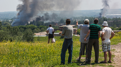 “We all saw what happened here yesterday. They used rocket launchers as well as incendiary bombs against us. The ground was on fire. How can the ground burn by itself. It burned for about forty minutes,” resident Roman Litvinov told RT over the phone.